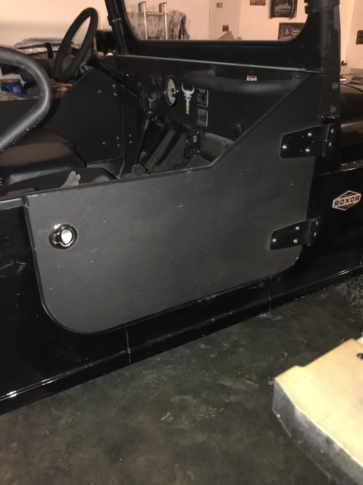 And if you use Jeep flat door hinges, the holes in Roxor don’t line up perfect and one hole has to be slotted.