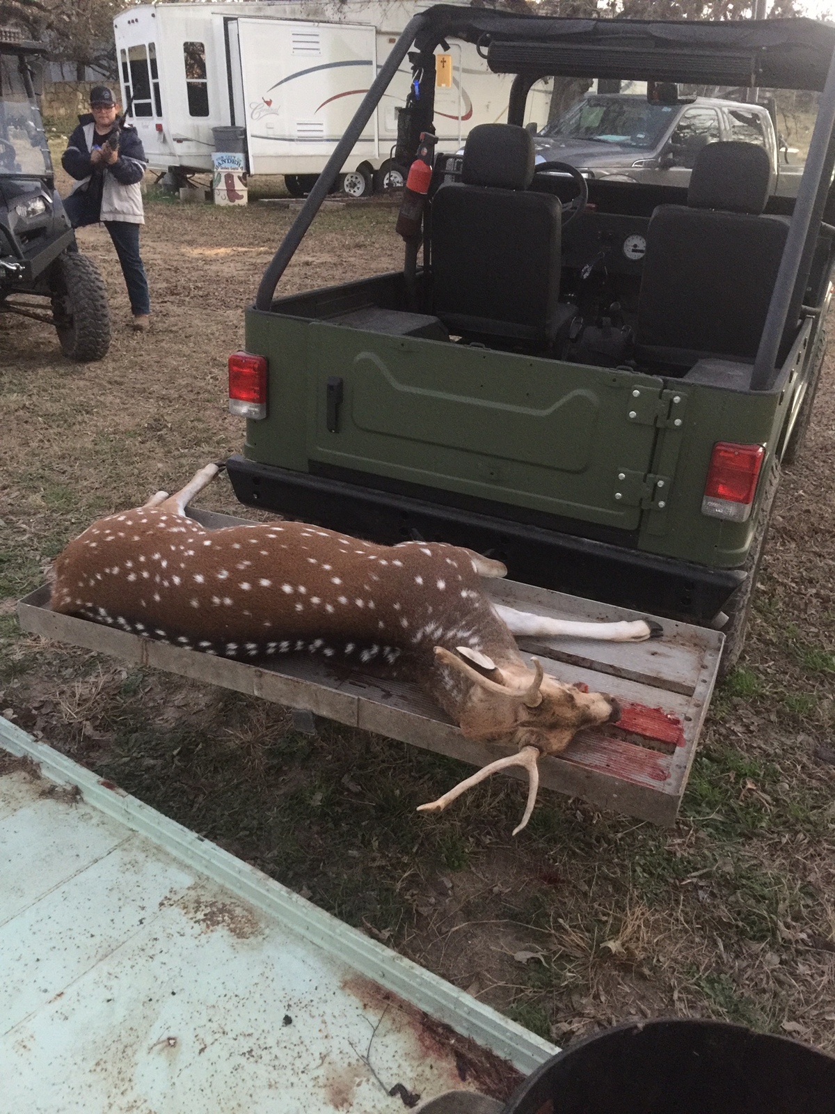 So far the roxor has been great game retrieval tool. The axis was at the deer lease and the hog I shot in my backyard.